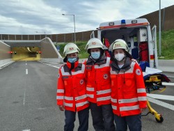 Heute war der DRK Ortsverein Immenstaad bei der Großübung des Tunnels in Waggershausen dabei. Gemeinsam mit regionalen Feuerwehren, den Johannitern Friedrichshafen sowie den DRK Ortsvereinen Friedrichshafen, Tettnang und Kressbronn wurde vor der Eröffnung des Tunnels, der Teil der B31 neu ist, ein Schadensszenario mit vielen Betroffenen simuliert. Einsatzannahme war ein LKW Brand ohne Unfall und in Folge dessen ein Auffahrunfall auf beiden Fahrspuren.
